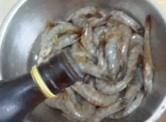 Step 1:準備材料!蝦用鹽,料酒,生抽,五香粉腌制半小時,蔥姜切絲,蒜用刀拍下