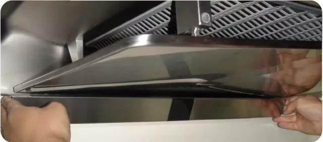 油杯、蝶翼板及油網清潔完畢用軟布擦干,用螺釘將油網固定在原來的位置,再依次裝上蝶翼板、油杯。這樣我們頂吸式油煙機的日常清潔保養工作也完成啦。