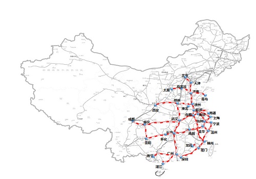 名氣高鐵大冠名,覆蓋全國主干高鐵線路:京滬線、京廣線、滬深沿海線、滬漢蓉線、滬昆線、隴海線、渝貴線等。