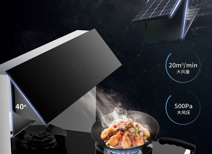 名氣集成灶913FT,采用40°星翼造型,動態攏煙設計,具有20m3/min的大風量,5KW大火力,500Pa的大風壓,油煙抽吸徹底,不上臉,在做菜爆炒的時候不嗆鼻。油煙剛一出現便消失不見,不會給家具、窗簾、墻壁留下污漬。