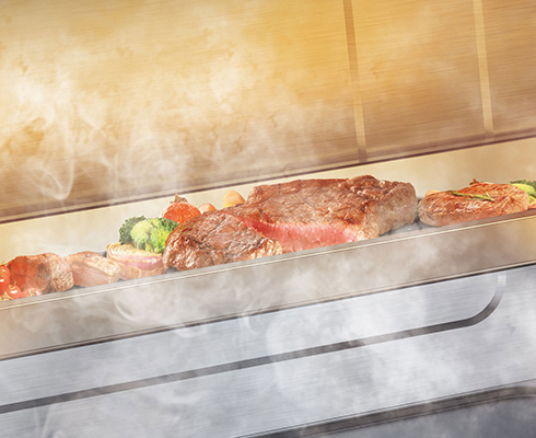 除了油煙處理功能外,集成灶還需要滿足人們多種口味的烹飪需求,中國人追求口味趨于多樣化,清蒸慢燉亦或是烘焙燒烤,都要能在廚房中快速實現。對此913FT集成灶集燃氣灶、油煙機、保溫柜、蒸箱、烤箱等多樣廚電于一體。上面可爆炒,下面可蒸烤,二者可同時進行,時間少一半。